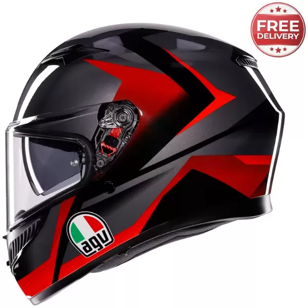 An AGV icon, evolving towards perfection. K3 is AGV’s full-face road helmet that takes all the characteristics of a versatile, safe helmet to outstanding levels. It offers safety for all, at the highest levels – the shell made of high-resistance thermoplastic material, the multi-density EPS and the details such as the collarbone-protection profile and the protective visor allow K3 to obtain the strict ECE22.06 homologation. Due to the AGV Extreme Safety construction protocol, K3 meets the requirements of the most recent international standards and then some. Its strength lies in its versatility. K3 is designed to put in its best performance in all situations. The built-in sun visor, which can be operated conveniently with gloves on, assists when it’s too bright, and doesn’t block the front ventilation when it’s in the rest position. The Pinlock Max Vision antifog system guarantees maximum visibility even on the wettest and coldest days, when the temperature difference between the environment and the inside of the helmet could cause the visor to fog up dangerously. Not with K3. The Ultravision visor also guarantees a 190° horizontal field of vision, so you can see obstacles, the road and everything in front of you earlier and better. K3 is prepared for the installation of communication systems. The Eyewear Ready interior design allows you to comfortably wear your eyeglasses or sunglasses while riding. Comfort boosts performance. The aerodynamic profile of the K3 is designed to achieve a dynamic weight of zero at a cruising speed of 130 km/h. It means lower weight and less strain on the neck muscles, for maximum concentration on riding. The interiors, made of 2DRY material with rapid absorption of sweat and moisture, can be customized, to personalize the fit to the full and maximize how comfortable it feels. The ventilation achieves maximum efficiency through the air vents at the front and on the chin, precise and easy to operate with gloves on. The practical micrometric steel closing system permits quick, safe adjustment of the helmet fastening.