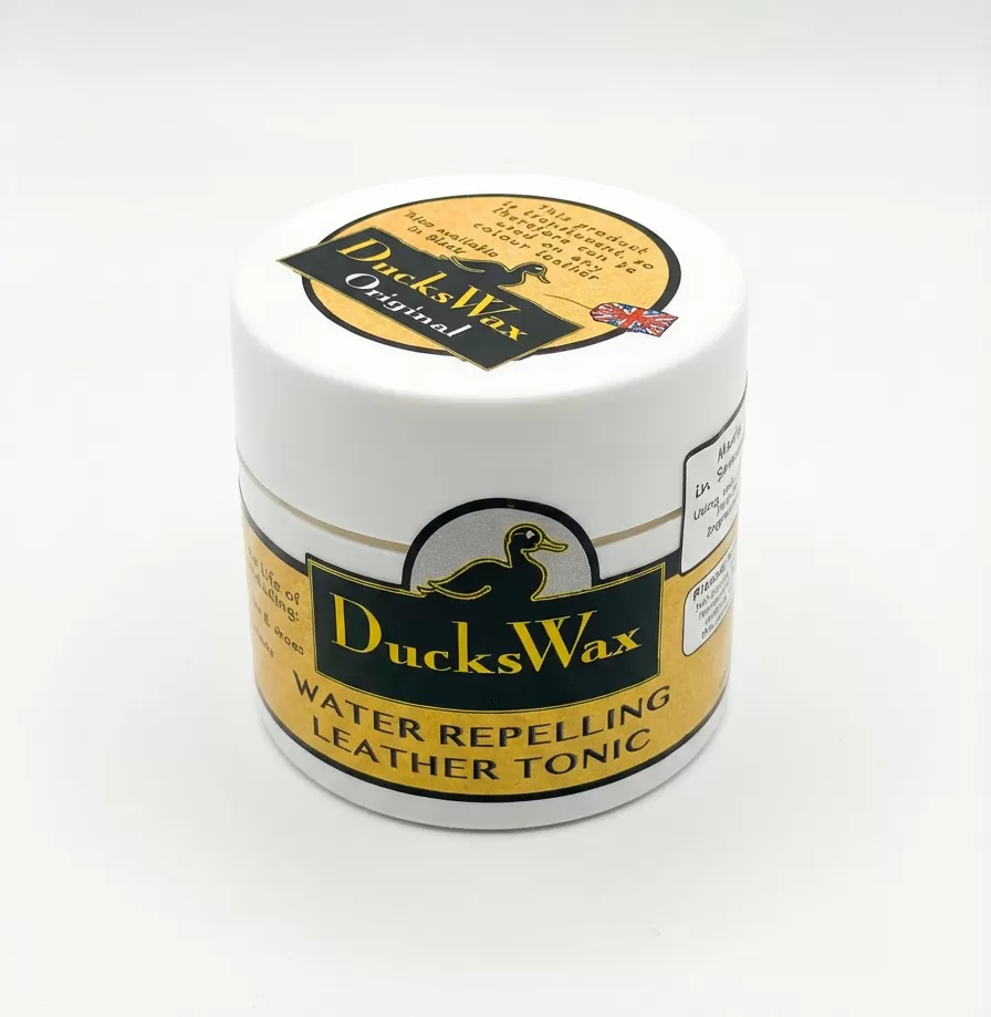 DucksWax water repelling leather tonic, keeps lethers clean and supple, apply gently with a soft cloth or sponge
