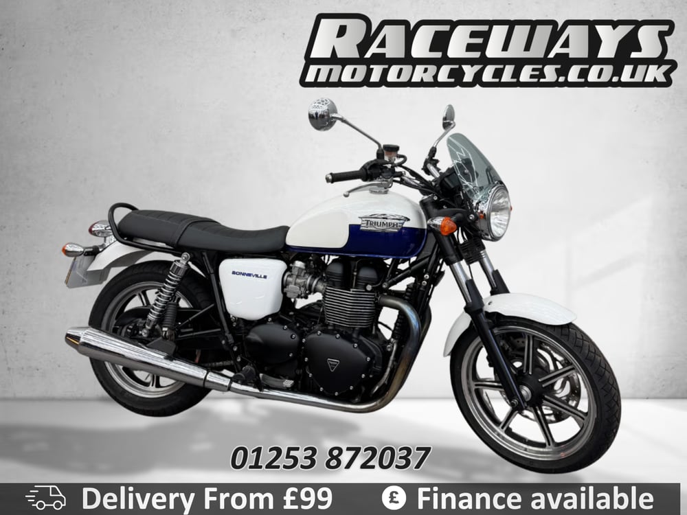 TRIUMPH BONNEVILLE, 865CC, 2014, WHITE/BLUE, 7,785 MILES, HPI CLEAR, 3 MONTHS WARRANTY, COMES WITH A VEHICLE HEALTH CHECK AND 12 MONTHS MOT, FINANCE AVAILABLE, DELIVERY FROM JUST 99